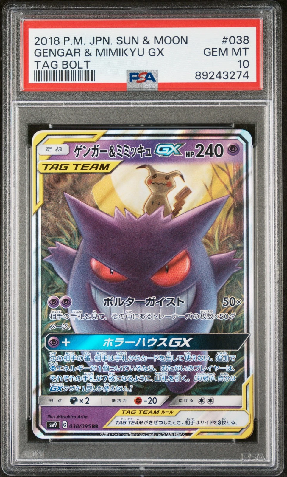 🎰👀 Gengar & Mimikyu Gx 038/095 Tag Bolt PSA 10 Pokemon Japanese