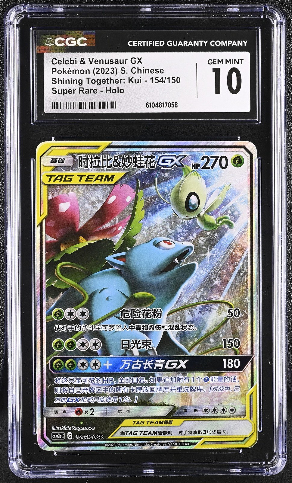 🎰👀 Celebi & Venusaur Gx 154/150 CGC 10 Super Rare Holo Pokemon Gem Mint